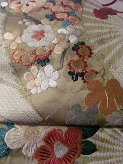 梅に菊に椿が刺繍で華やかに咲いておりますよ!