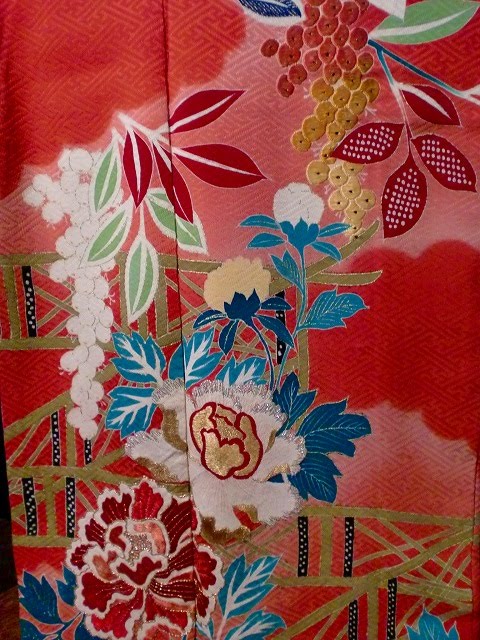 南天と牡丹柄のアンティーク訪問着(税込)¥105,000