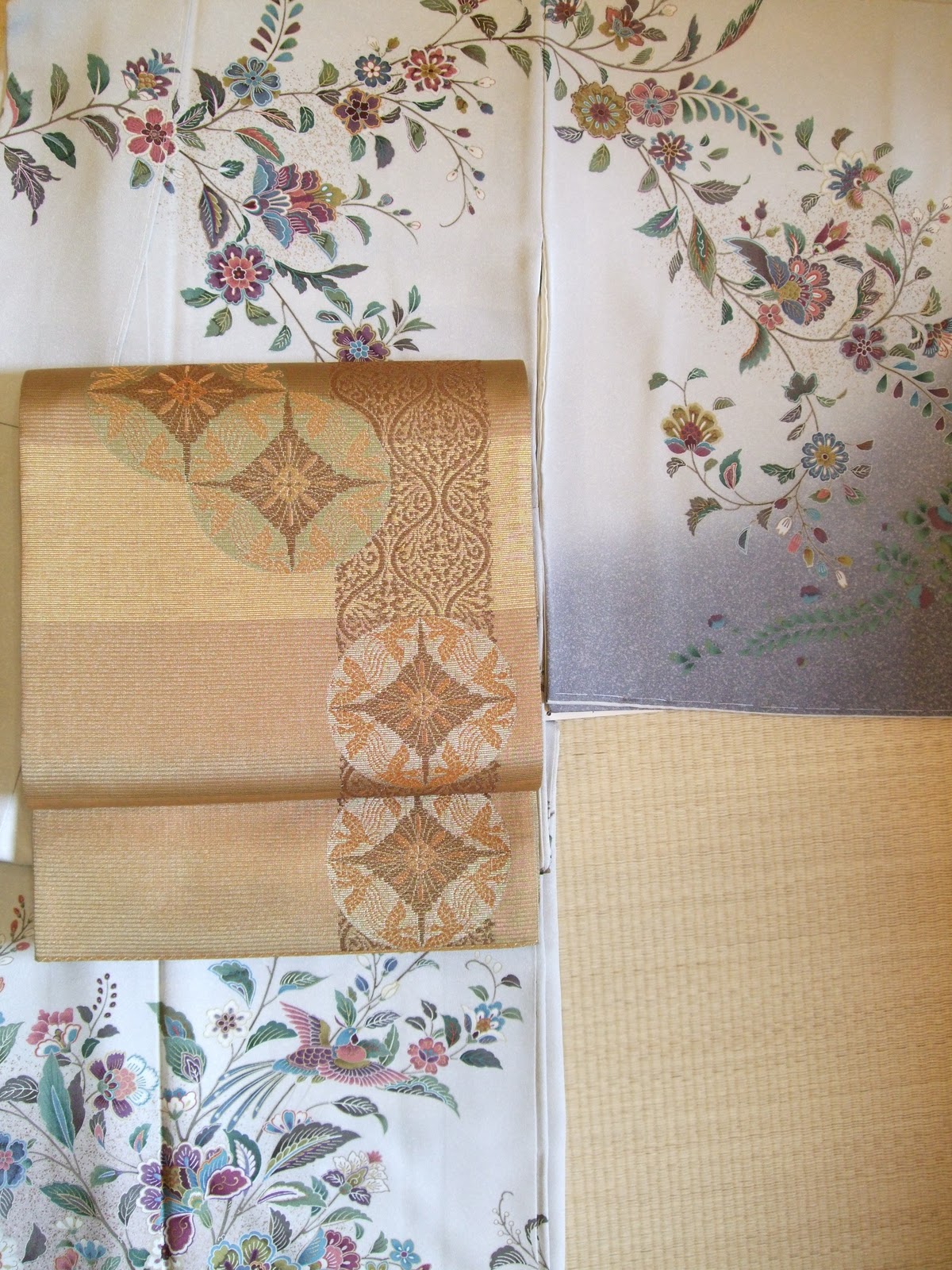 暈し地に流動感のある蒔糊、昔から親しまれている架空の華をモチーフとした唐草文様柄が描かれた飽きのこない着物です。