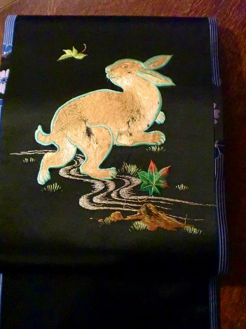 アンティークウサギ柄名古屋帯・お仕立替済 sold out